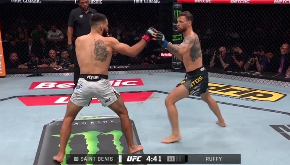 Смотреть онлайн видео боя UFC в лёгком весе (до 70,3 кг), в октагоне встречались: француз Бенуа Сен-Дени (14-3) и бразилец Маурисио Руффи (12-1). Бой проходил в ночь с 6 на 7 сентября в Париже, Франция, в рамках со-главного события UFC Fight Night: Imavov vs. Borralho, еще известного, как UFC Париж.