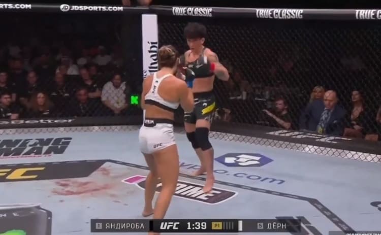 Смотреть онлайн видео титульного боя, за пояс чемпионки UFC в минимальном весе (до 52,2 кг), в октагоне встречались: чемпионка, Вирна Яндироба (22-3) из Бразилии и соотечественница Маккензи Дерн (15-5). Поединок проходил 25 октября в Абу-Даби, ОАЭ, в рамках со-главного события турнира UFC 321: Aspinall vs. Gane.